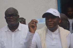 Très vite, NIONDO est obligé de parcourir une longue distance à pieds accompagné par la population et les curieux amassés le long de la route pour saluer l’entrée triomphale de cet homme sur qui les muandais placent désormais une confiance indescriptible et classé parmi les 10 personnalités les plus influentes du Kongo Central. Après avoir visité quelques quartiers éclairés par lui avec des lampadaires solaires, Robert Niondo TOKO s’est dirigé vers le centre d’enrôlement pour récupérer sa carte d’électeur, accompagné par sa charmante épouse.