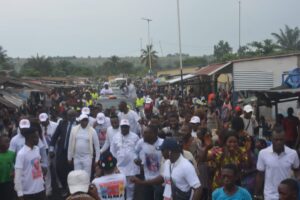 Ensuite la même opération de sensibilisation à l’enrôlement va se poursuivre dans les Villages de Malemba et Kai Tshinionga respectivement, village de son père et celui de sa maman. C’est au tour de 16H10′ que Robert Niondo TOKO, le philanthrope, va faire son entrée triomphale dans la cité côtière. À son arrivée, son nom est scandé par la foule qui a entonné des chansons à sa gloire. Certains n’hésitant pas à le qualifier de Moïse qui fera traverser les muandais et Muandaises l’océan Atlantique.