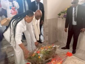Tout à commencé cet après midi par un long processus depuis le premier village du Territoire de Muanda. Le long de la route qui mène vers la cité côtière, le cortège du notable Robert a fait plusieurs arrêts. D’abord à Nzadi Kongo où Robert Niondo a déposé une gerbe de fleurs au mausolée du défunt Président de l’Assemblée Provinciale, Tsimba Nzungila. Dans ce même village, il a tenu à sensibiliser la population, à s’enrôler massivement.