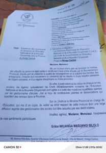 Notons que cette décision s’inscrit dans une volonté claire du gouverneur Grâce Bilolo de garantir un environnement éducatif stable et propice à l’apprentissage, en accord avec les objectifs du programme gouvernemental sur l’éducation.